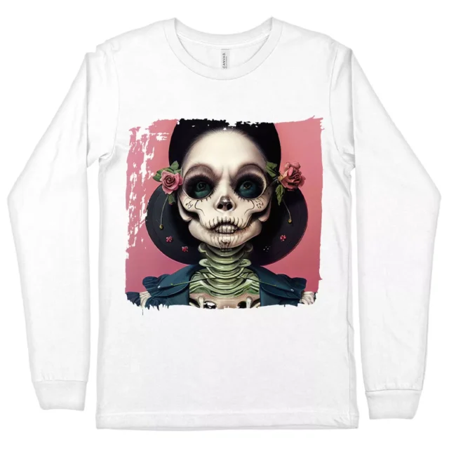 3D Skull Long Sleeve T-Shirt – Skeleton T-Shirt – Halloween Themed Long Sleeve Tee Shirt