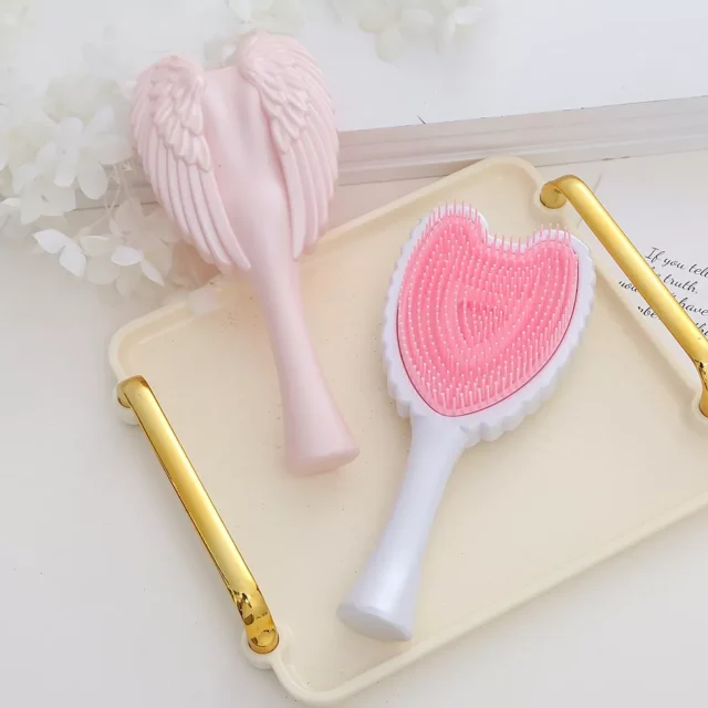 Simplify your hair routine with the Anti-Tangle Hair Brush, a cute and professional tool designed to glide through knots and tangles with ease. Whether your hair is wet or dry, this brush ensures a gentle, pain-free detangling experience, thanks to its blend of durable plastic and soft silicone bristles. Its compact, lightweight design makes it easy to carry wherever you go, and its angel-wing shape adds a touch of style to any salon or home setup. Available in elegant white and playful pink, this brush not only works beautifully but looks great on your vanity.