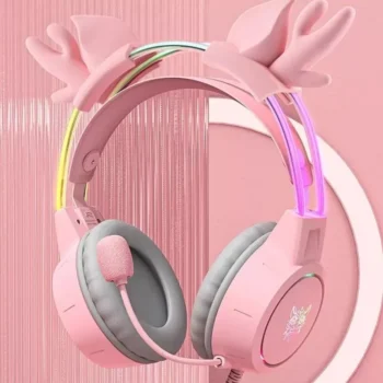 RGB Lit Gaming Headset with Detachable Antlers, HD Mic & Stand – Perfect Christmas Gift