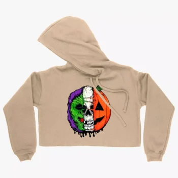 Women’s Cropped Fleece Halloween 3 Hoodie – Halloween 3 Silver Shamrock Masks Hoodie