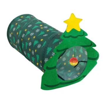 Festive Feline Fun: Cat Christmas Tree Tunnel with Playful Balls